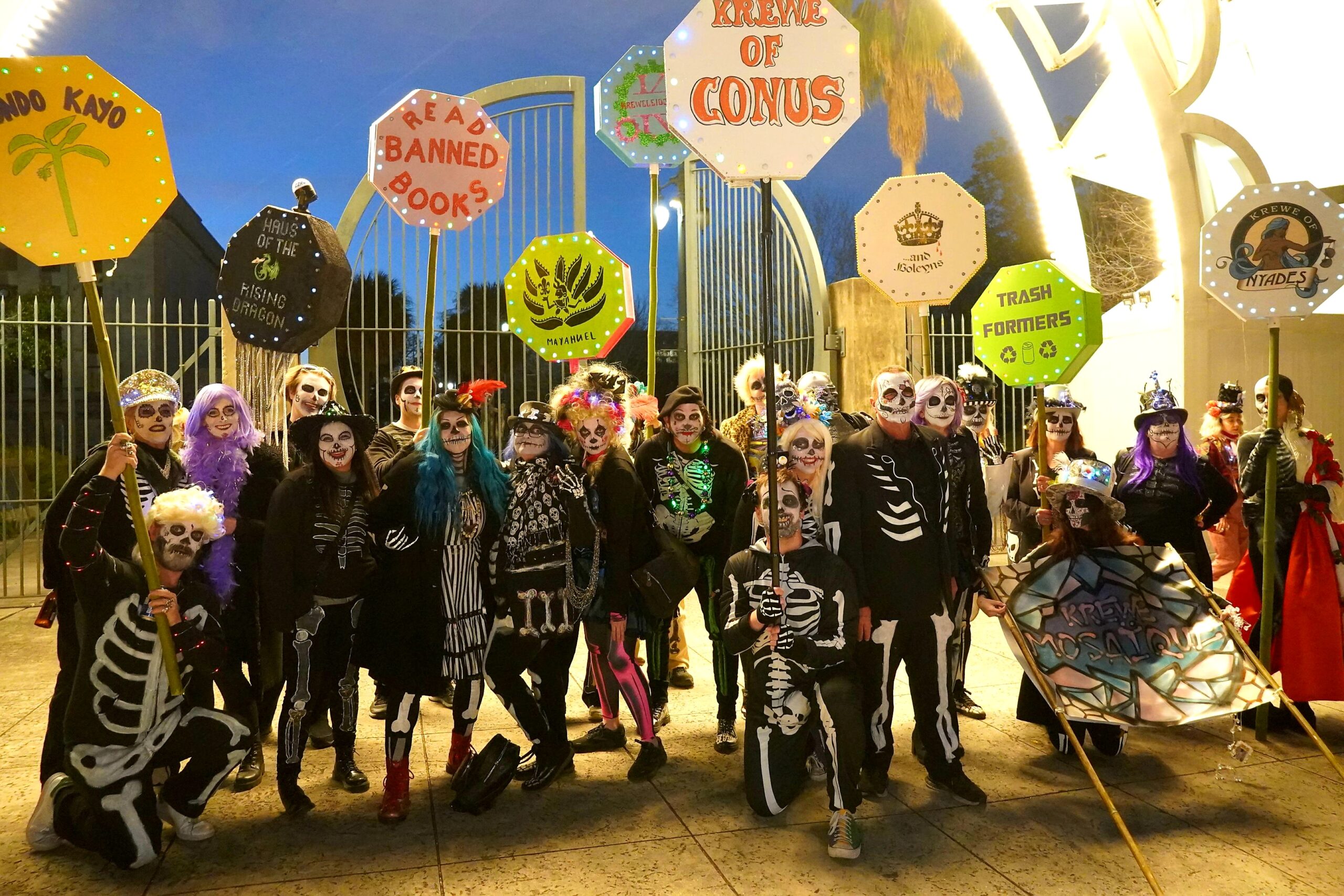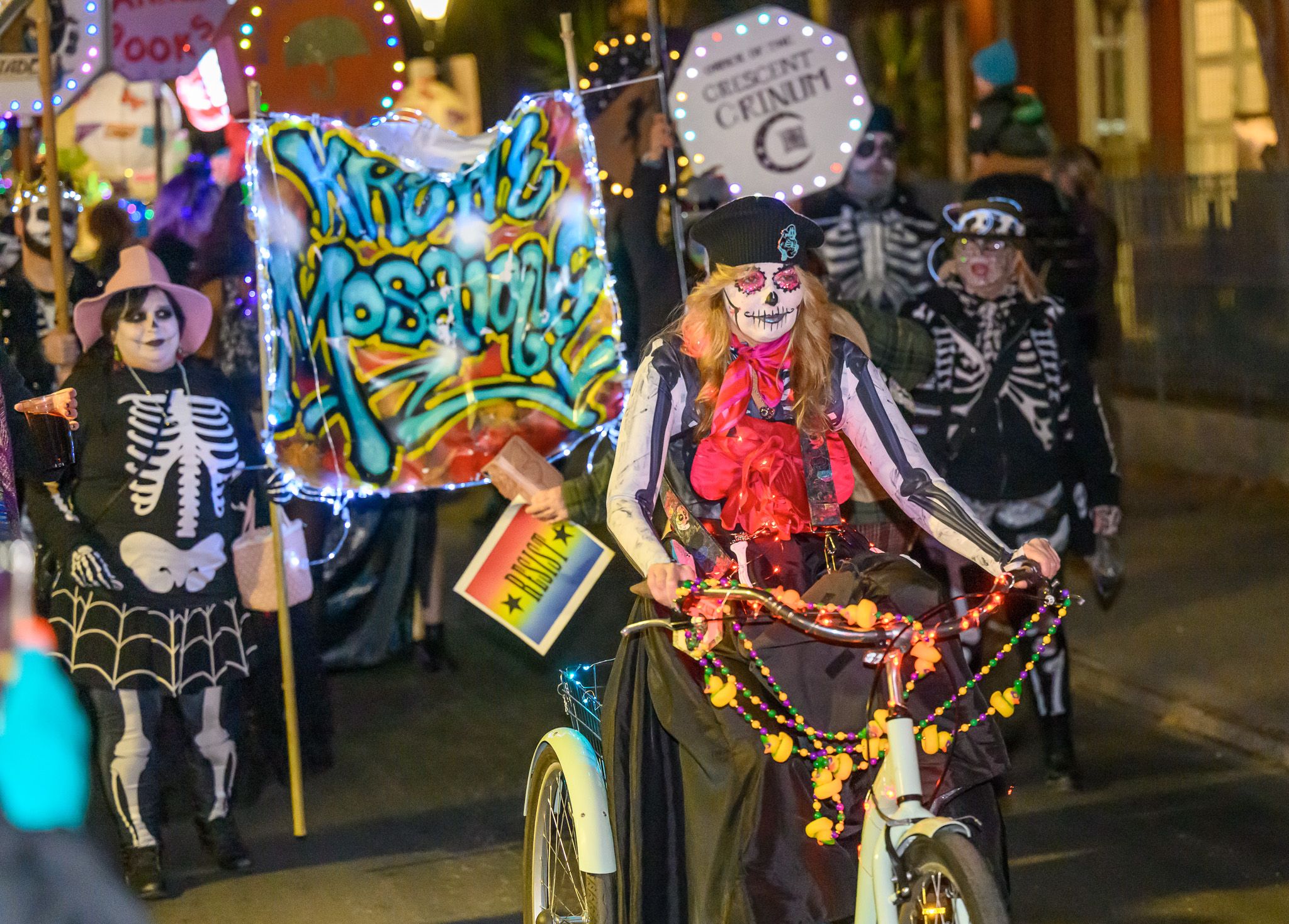 Bone Soir is a walking Krewe that dances its way thru uptown and downtown parades, promoting an inclusive time to ‘skellie’ up and express ourselves.